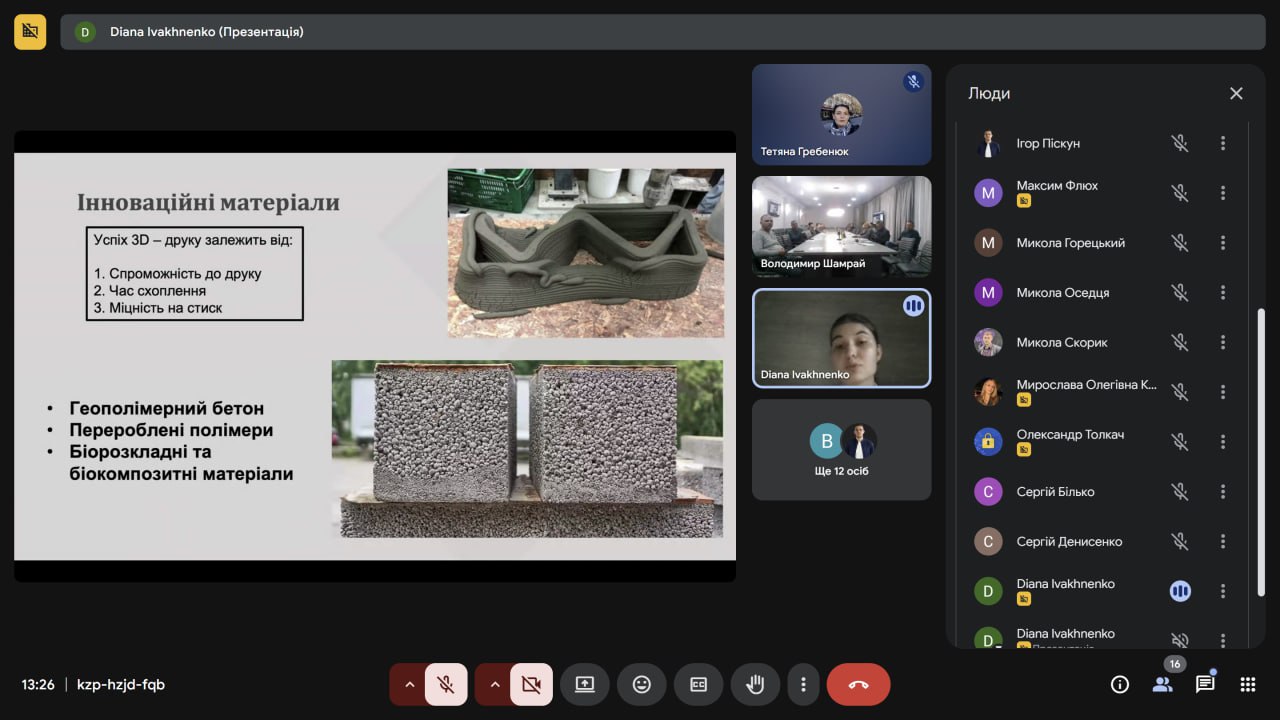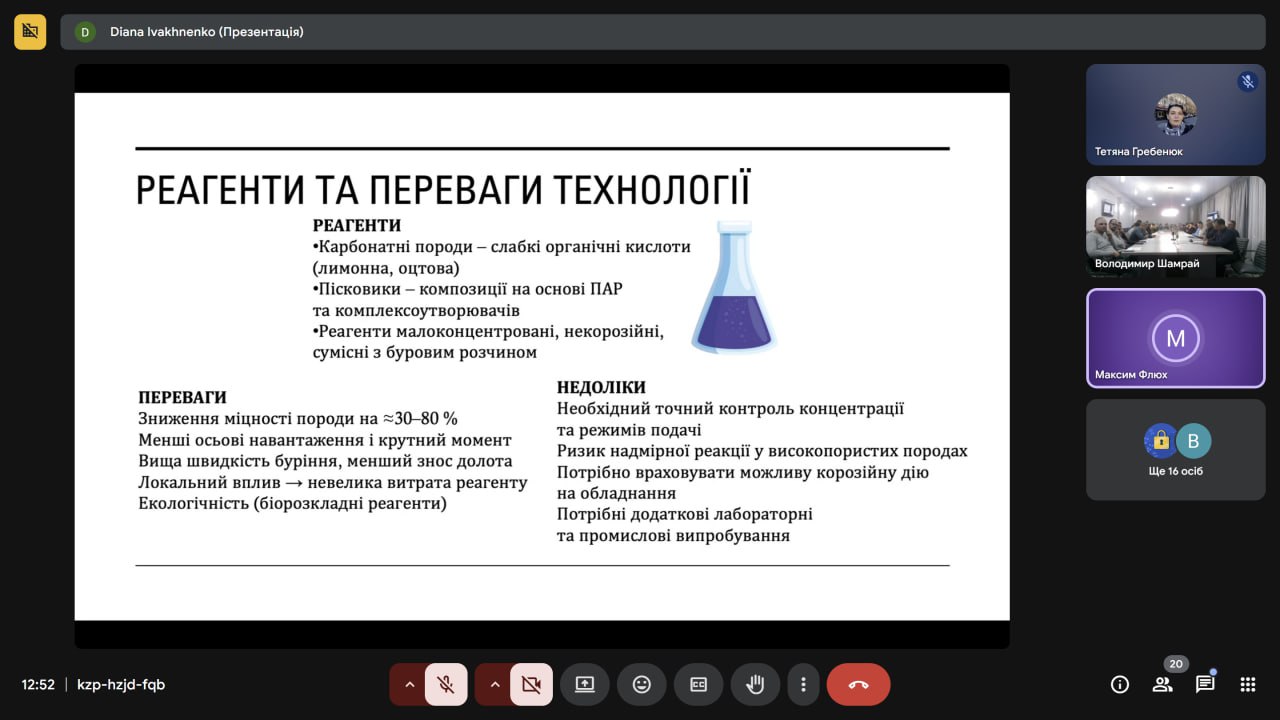 Студенти першого курсу бакалаврського та магістерського рівнів спеціальності G2 «Технології захисту навколишнього середовища» групи ГТ‑51 — Івахненко Діана та Флюх Максим — у рамках наукового гуртка «Екомайнінг» під керівництвом к.т.н., доцента Гребенюк Тетяни Володимирівни взяли активну участь у ІІІ Всеукраїнській науково‑практичній конференції «Сучасні проблеми гірництва та будівництва». Вони представили власні науково‑дослідні роботи у вигляді змістовних презентацій, продемонструвавши інноваційне бачення вирішення актуальних екологічних викликів у гірничій та будівельній галузях.